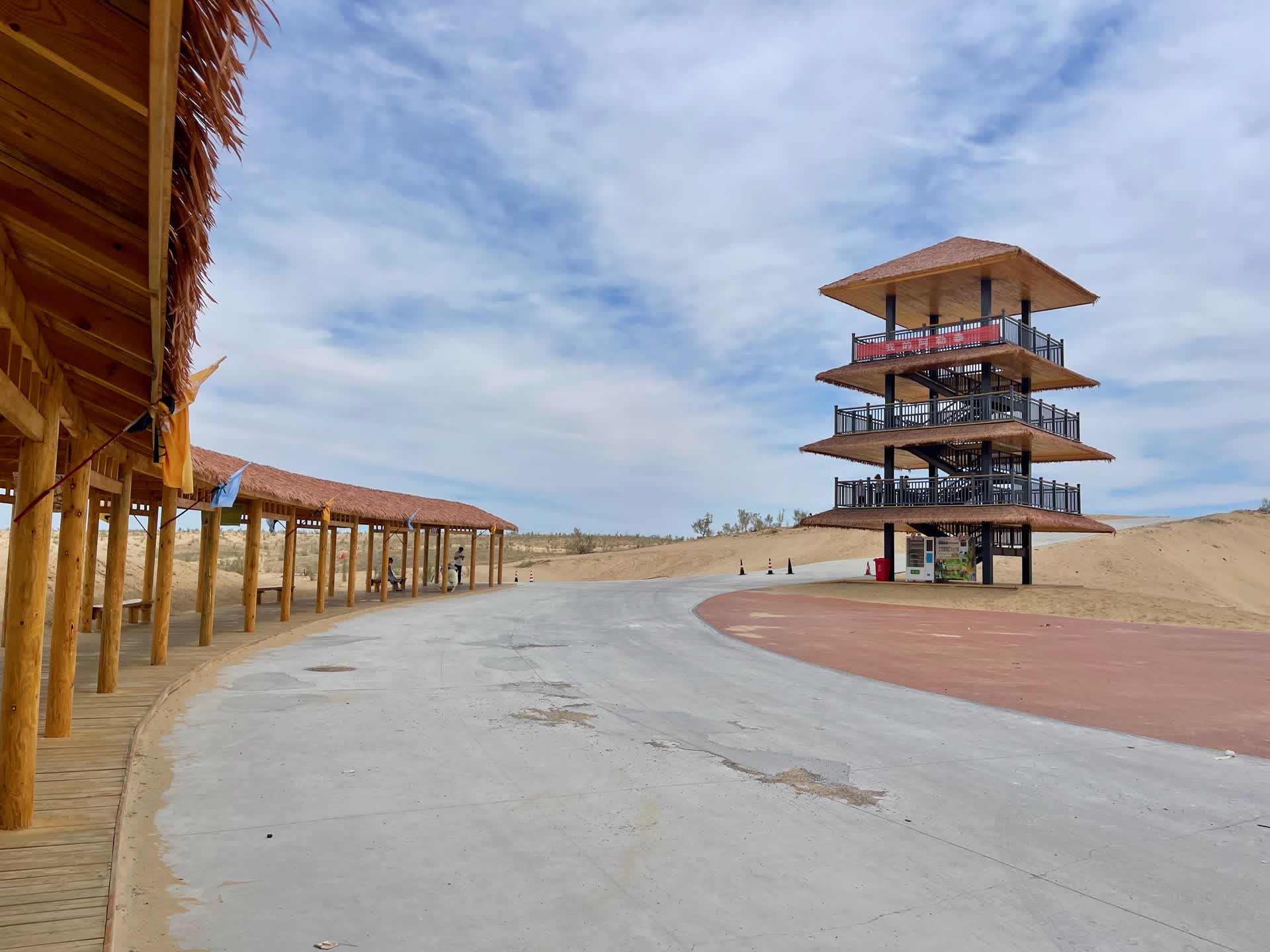 此行的第一站,是传说中的喀纳斯。从乌鲁木齐到喀纳斯景区,七百公里路程,一日奔袭太过仓促,我们便择北屯镇歇脚。沿S21阿乌高速一路向北,这条公路纵贯古尔班通古特沙漠——中国第二大沙漠,也是北疆最雄浑的地理坐标。出发前,我们满脑子都是瀚海无边、沙丘连绵的想象,满心都是闯入沙海的亢奋。可真正驶入,反倒生出几分意外的失落:如今的治沙工程早已把狂沙驯服,公路两侧,草方格牢牢锁住流沙,梭梭、红柳与沙棘连片成荫,荒野的粗粝被生命的绿意温柔包裹。人类以数十年坚守,在大漠腹地铺就坦途,这本身,就是一部比风景更动人的史诗。