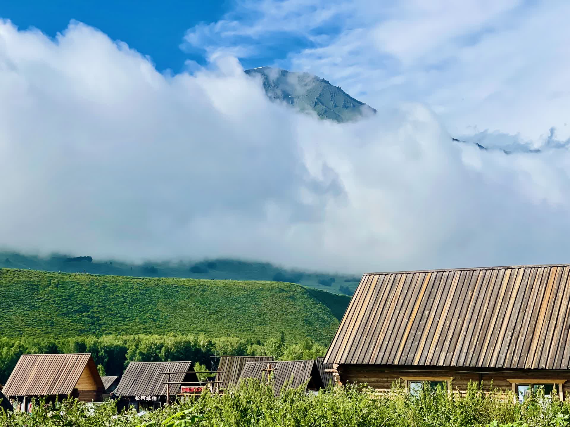 下山的路,依旧伴着清风与鸟鸣。回望禾木,小木屋在阳光下静静伫立,雄鹰依旧在天际盘旋,低垂的白云与青山、河水相映成趣,仿佛时光从未流转。这场从风雨到晴空的旅途,从狼狈到欢喜的际遇,恰如人生的寻常光景,有猝不及防的阴霾,也有不期而遇的美好。