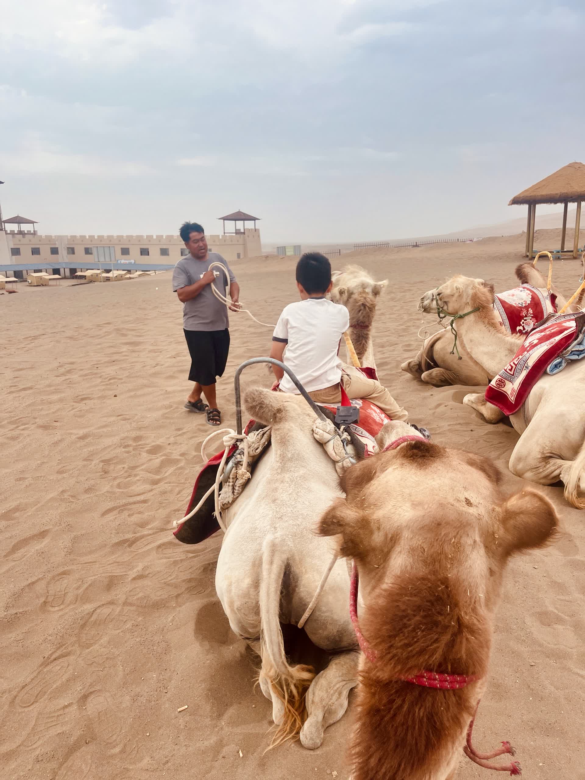 徒步过后,我们骑上双峰驼漫步沙海。骆驼温顺地跪蹲在地,等我们坐稳扶好,便猛然站起身,瞬间将人托举到高处。它步伐沉稳缓慢,宽厚的脚掌在松软沙地上行走如履平地,即便翻越起伏沙丘也格外轻松。人与骆驼穿行在无垠沙海,在这片干旱荒芜的环境里,人类依靠骆驼的坚韧穿越戈壁,骆驼也因人类的驯养得以繁衍,恶劣的自然条件下,彼此依存、相互成就,正是西域千年传承的生存智慧。